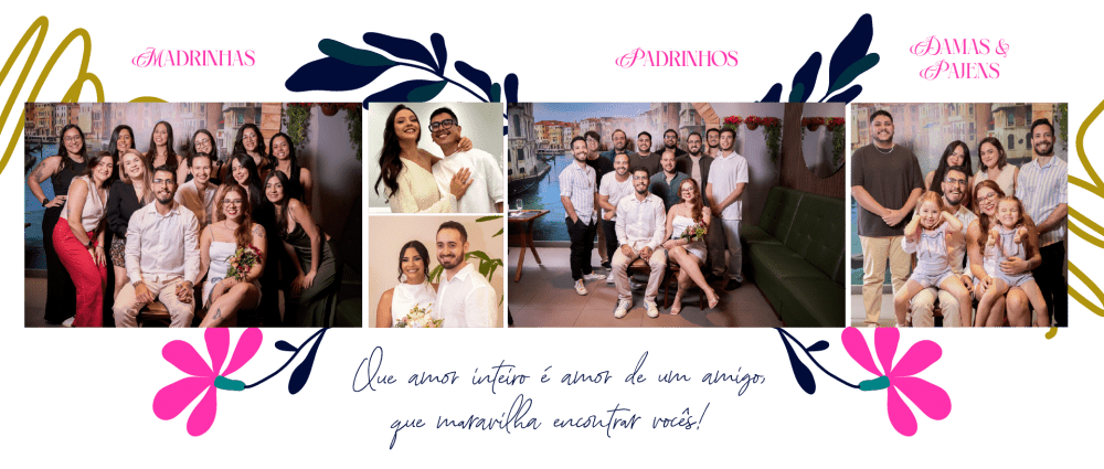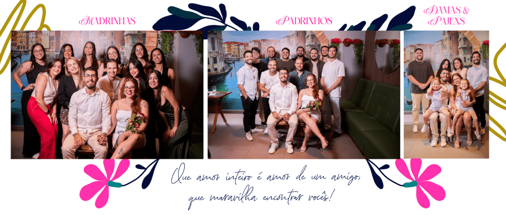 Agora, ao se unirem em matrimônio, recebem a bênção de Jesus, que os uniu desde o início, e firmam um compromisso de amor e companheirismo. Seguirão juntos, realizando sonhos e construindo uma vida lado a lado, certos de que sempre terão um ao outro nos momentos bons e nos desafiadores.
