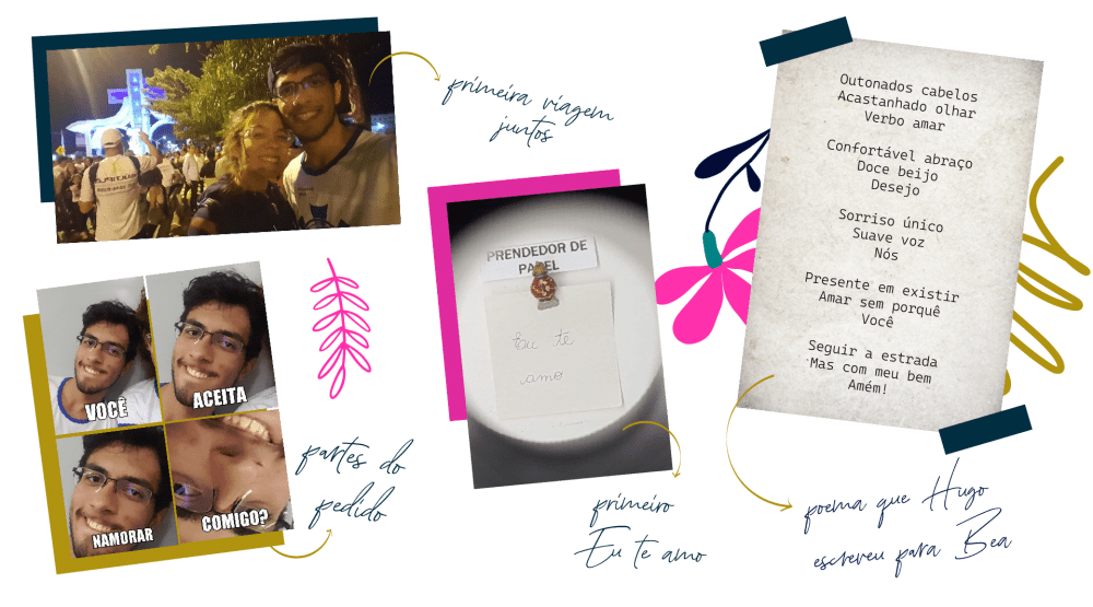 Daquele dia em diante, a história apenas se fortaleceu. No dia 14 de maio, eles falaram "eu te amo" pela primeira vez. O Hugo foi o primeiro a falar! No dia 28 de maio, veio o pedido de namoro. A primeira viagem foi para Trindade - GO, acompanhados da mãe da Bea e de uma amiga, em uma excursão cheia de senhorinhas, e muita oração.